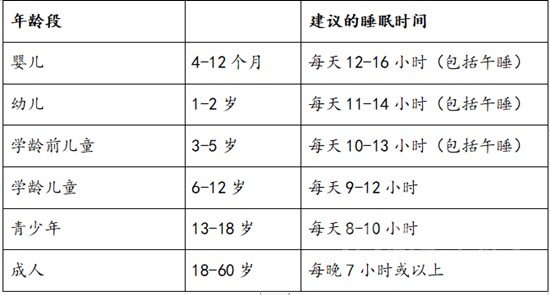 隨著(zhù)年齡的增長(cháng),每個(gè)人需要的睡眠時(shí)間也會(huì )發(fā)生變化。美國睡眠醫學(xué)會(huì )和中國睡眠研究會(huì )建議: