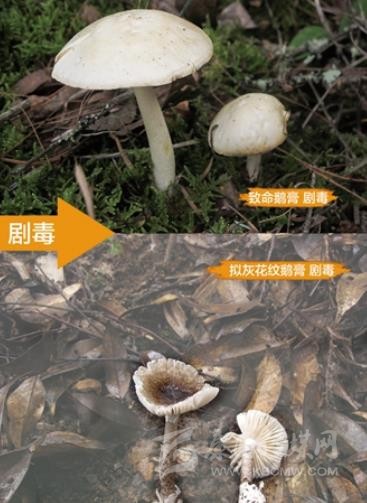 含劇毒的致命鵝膏和擬灰花紋鵝膏。圖片來(lái)源:中國疾病預防控制中心