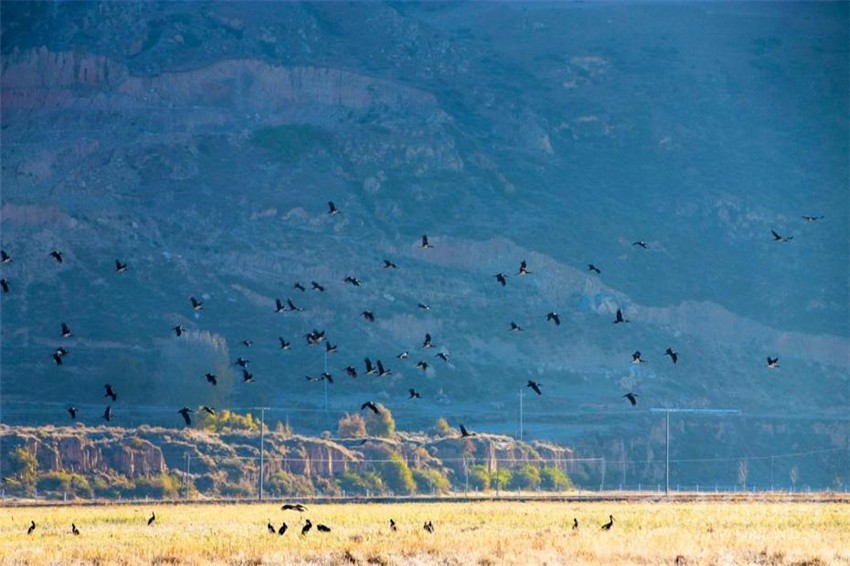 自2013年在鮮水河濕地公園固依壩子發(fā)現(xiàn)了大批黑鸛后,每年10月都有大批的黑鸛在鮮水河濕地公園內(nèi)遷徙和停歇,這在全國尚不多見,足以證明濕地公園生態(tài)環(huán)境的平衡和和諧,同時也印證了鮮水河濕地公園已經(jīng)成為黑鸛種群的重要棲息地,具有重要的保護意義。