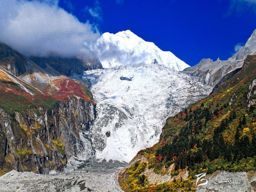 海螺溝位于四川省甘孜藏族自治州東南部,貢嘎山東坡,是青藏高原東緣的極高山地。海螺溝位于貢嘎雪峰腳下,以低海拔現(xiàn)代冰川著稱(chēng)于世。晶瑩的現(xiàn)代冰川從高峻的山谷鋪瀉而下。海螺溝是亞洲最東低海拔現(xiàn)代冰川發(fā)現(xiàn)地,海拔2850米。其大冰瀑布高1080米,寬0.5米-1100米,是中國(guó)至今發(fā)現(xiàn)的最高大冰瀑布。溝內(nèi)蘊(yùn)藏有大流量沸熱溫冷礦泉,大面積原始森林和高的冰蝕山峰,大量的珍稀動(dòng)植物資源,金山、銀山交相輝映,蔚為壯觀(guān)。