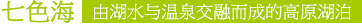 位于仙乃日與央邁勇之間,海拔4600米,在牛奶海的上方,翻上一片陡峭的山岡,再上升100 多米,在山脊上就能俯瞰五色海了,湖面呈圓形。面積0.7 公頃,水色變化無窮。五色海由于會在光的折射下,產(chǎn)生五種不同的顏色而得名。其藏名為“木底錯(cuò)”、“單增錯(cuò)”,是藏族聚居區(qū)著名的圣湖(佛經(jīng)中贊譽(yù)該湖與西藏羊卓雍錯(cuò)齊名),據(jù)傳能“返演歷史,預(yù)測未來”,有很多宗教上的傳說。