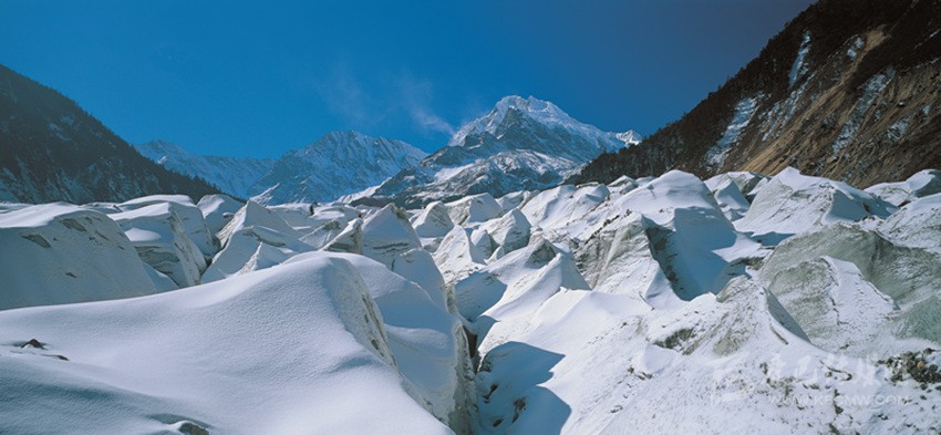 冬季的海螺溝是冬雪仙境、人間至美!海螺溝位于貢嘎雪峰腳下,是“蜀山之王”貢嘎山的問鼎畫卷和令人神往的“香巴拉門戶”,站在雪后的海螺溝遙望貢嘎神峰,猶如一道冰凝玉砌的天庭界碑,氣勢雄渾直指九霄,雪霧攜祥云共舞峰巔,絕世獨(dú)立的山王風(fēng)范在冰雪仙靈的輔佐下,更顯帝王之氣。