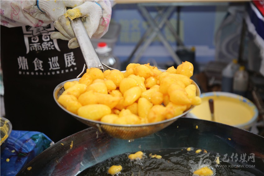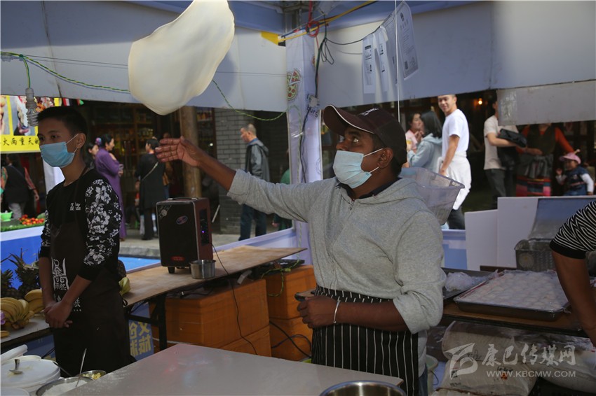 要說美食節(jié)最炫酷的店鋪,那非“印度飛餅”莫屬了。記者穿過層層圍觀的人群,點了一份菠蘿飛餅。只見廚師將捏好的面團在案板上揉了幾下,便捏緊面餅一端按順時針方向轉動,手里的面餅越轉越大,越轉越薄,幾近透明,接著就是放餡料,稍做煎炸,切割裝盤,短短一分鐘內,一氣呵成。記者接過盤,咬下一口,“喀嚓”一聲,再一口就吃到了菠蘿的清香,外層淺黃松脆,內層綿軟白皙,略帶甜味,好一個外脆內嫩?。〗榔饋韺哟呜S富,一軟一脆,口感對比強烈,嚼過之后,齒頰留芳。當脆餅撞上菠蘿的清香,就像在夏天突然掉進一個水池,清爽又驚喜?!案杏X就是一件的藝術品啊!”如此的驚嘆聲從人群中迸發(fā)出來。
