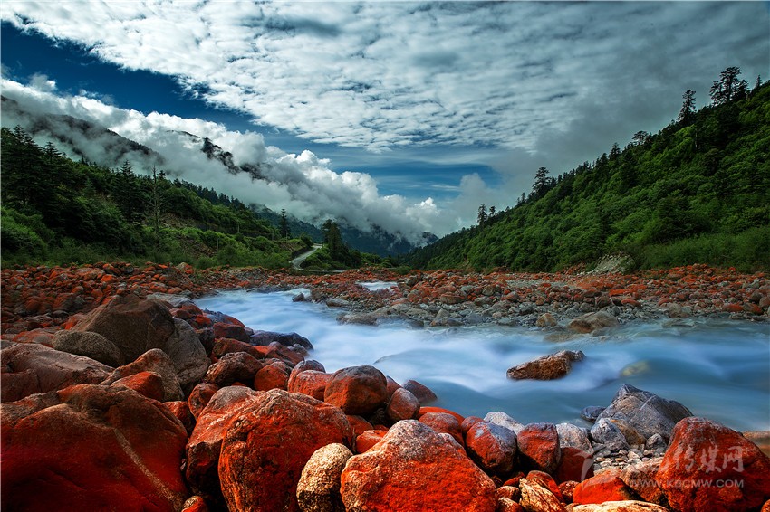紅石是大自然贈送給貢嘎山地區(qū)最珍稀的物種之一。海螺溝風(fēng)景區(qū)分布著大面積的紅石灘,每一塊石頭都被披上了一件美麗的紅色外衣,紅石在河流兩旁堆積,成群的紅石變成一種流動的紅色,與清洌的流水相伴順流而下,讓人感嘆大自然的造化神奇。