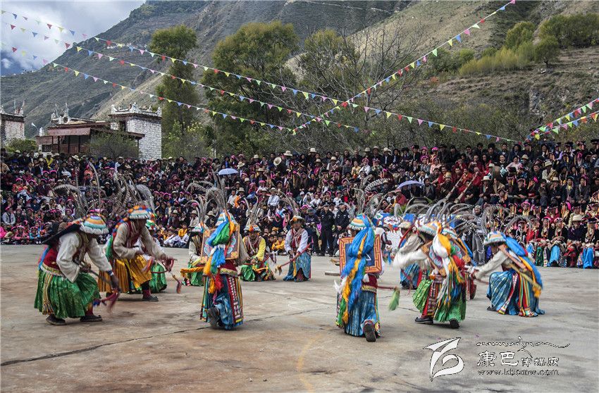 丹巴縣巴旺鄉(xiāng)村民跳弓箭舞。