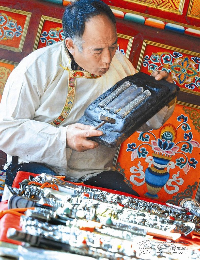 實(shí)際上,河坡藏族手工藝的歷史,可以追溯到1300多年前。自從松贊干布時期,藏王屯兵康區(qū),不斷向東南內(nèi)地?cái)U(kuò)張起,這里就開始了刀槍、戈矛、弓箭等兵器的鑄造。河坡工匠利用當(dāng)?shù)罔F礦土法煉鐵,作為鑄造兵器的原材料。附近的熱加鄉(xiāng)阿仁溝,如今還能見到當(dāng)時的煉鐵遺跡。