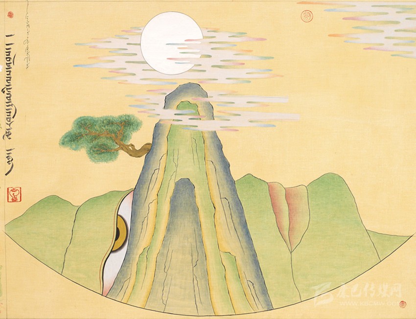 15世紀(jì)以來(lái),唐卡發(fā)展所恒定的兩個(gè)元素:一是平面構(gòu)圖的神佛之境,另一則是吸收大青綠山水精髓。正如DNA鏈的雙螺旋結(jié)構(gòu)一般,使唐卡繪畫(huà)在歷史時(shí)空中穿插縈繞,在雪域各地生根開(kāi)花。到了公元20世紀(jì)初,照片的高度寫(xiě)實(shí)促使藏地畫(huà)家邁出了革新步伐,使得唐卡繪畫(huà)逐漸擺脫傳統(tǒng)束縛,開(kāi)啟了“人”的覺(jué)醒。衛(wèi)藏地區(qū)出現(xiàn)了“根敦群培、安多強(qiáng)巴”引入寫(xiě)實(shí)主義的嘗試,成為當(dāng)今西藏“布面重彩”的先驅(qū)。新中國(guó)成立后,內(nèi)地的美術(shù)創(chuàng)作積極影響了三大藏區(qū)的繪畫(huà)發(fā)展,上世紀(jì)80年代,四川康區(qū)“甘孜藏畫(huà)”肇起,在《嶺·格薩爾王》人文主義的召喚下,《雪山兒女》《唐東杰布》《新概念唐卡》正從歷史深處一路走來(lái)。而近年來(lái),安多藏區(qū)則創(chuàng)新出了“藏族祥巴版畫(huà)”,祥巴版畫(huà)不僅是從材料技法上對(duì)西藏繪畫(huà)的豐富,更是藏地畫(huà)家們?cè)谧杂X(jué)不自覺(jué)的求新、求變;甚至在傳統(tǒng)唐卡領(lǐng)域,民間畫(huà)師也都在紛紛嘗試將傳統(tǒng)唐卡和現(xiàn)代審美相結(jié)合。這一切,正是唐卡繪畫(huà)從傳統(tǒng)走向現(xiàn)代、由宗教博衍至生活的演變過(guò)程,在這個(gè)過(guò)程里,藏地畫(huà)家不僅在畫(huà)面的形式和語(yǔ)言上完成了傳統(tǒng)與當(dāng)代的統(tǒng)一,還將西藏的審美特質(zhì)虹化為作品的精神內(nèi)核。這也是唐卡藝術(shù)第二次“從香巴拉到人間”的過(guò)程,成為民族文化發(fā)展的新坐標(biāo)。