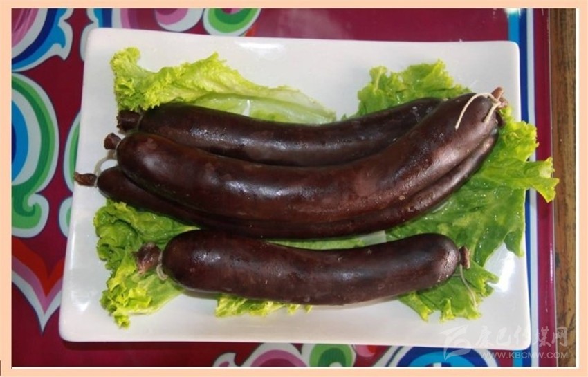血腸:血腸是將宰殺牲畜的血與玉米面或麥面、蕎面混合在一起,再加以食鹽、花椒面等香料提味,然后將混合物裝進(jìn)洗干凈的牲畜腸里,人鍋煮熟即可。吃的時候,或蒸或烤,蒸則腸衣柔軟很有嚼頭;烤則腸衣香脆可口。因?yàn)檠c不能長時間保存,所以吃血腸的時間一般在宰殺牲畜的幾天內(nèi)。