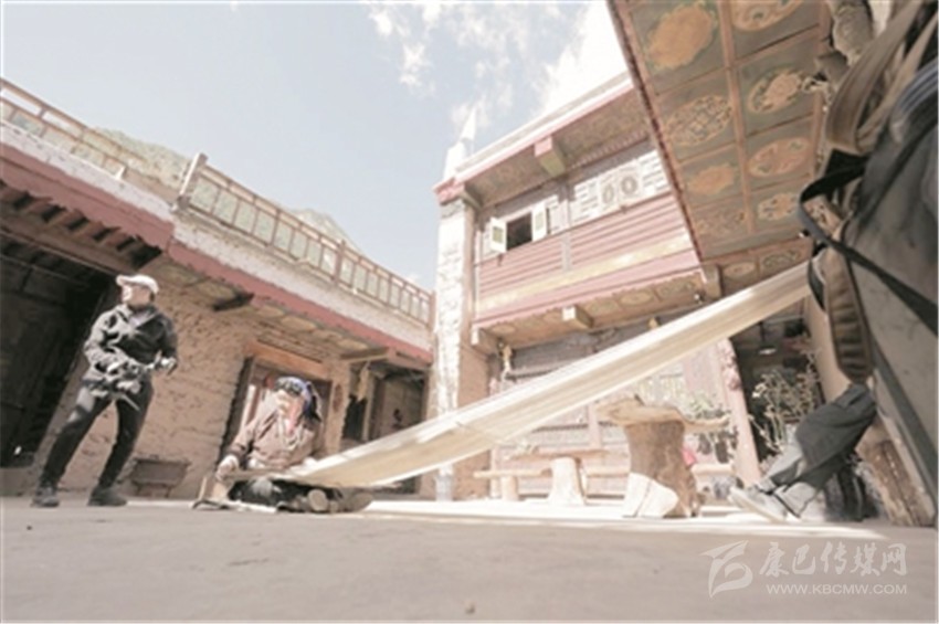 藍藍的天空下,成群的牦牛散落在草場上吃草。在一派祥和的氣氛中,傳來一陣清亮的歌聲。拉姆的媽媽和哥哥扎西,正在腌制著香豬腿。