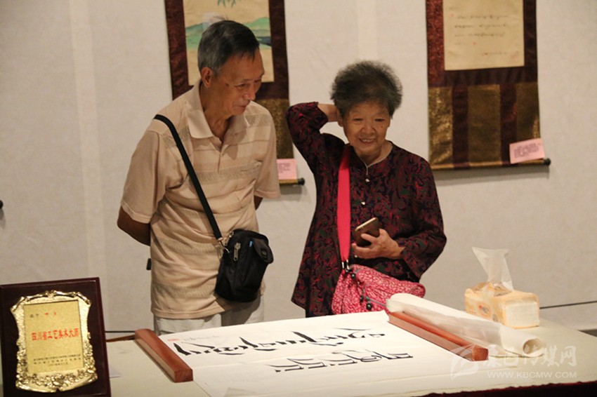 挑選書寫用紙、設(shè)計藏文布局。四川省工藝美術(shù)大師呷多也是忙碌不停。“展覽越辦越好、越辦越有特色了?!边@是他多次參加我州文化展覽后的親身感受,他直言本次展覽又是一次向前的踏步。