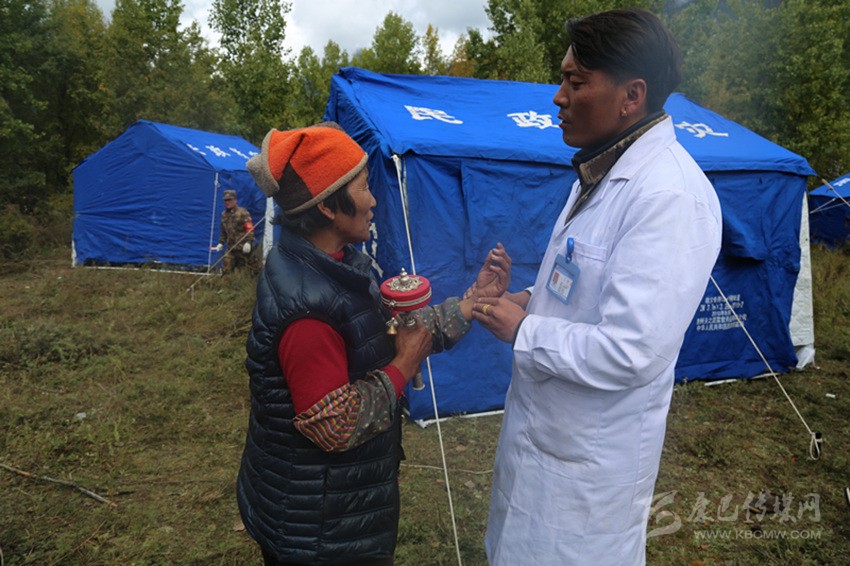 醫(yī)務(wù)人員為安置點群眾進行健康檢查。