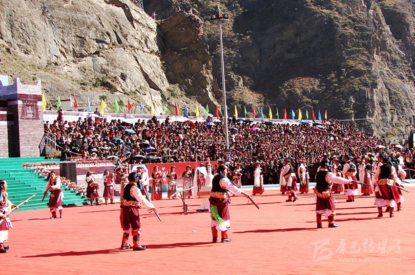 槍舞,嘉絨語(yǔ)中稱為“訥沖呷兒”,主要是在祭祀、集會(huì)、節(jié)日時(shí)表演的一種近似于戰(zhàn)術(shù)的舞蹈。在舞蹈中,舞者圍成一個(gè)圓圈,手持明火槍,明火槍,是最早的一種真正適于在戰(zhàn)場(chǎng)上為軍事目的使用的火槍。槍膛為一根圓柱形的鐵筒,筒口直徑為三厘米左右,在槍膛底部,有一個(gè)小圓孔伸出槍管,為導(dǎo)火管。如耳朵狀,因此也稱為槍耳,主要是用來(lái)點(diǎn)火的地方。圓筒固定在堅(jiān)硬的木托頂端。這種輕火器或者說(shuō)小型火炮使用的是形狀不規(guī)則的彈丸,即不大的實(shí)心彈,它緊貼大?;鹚幹瞥傻难b藥,借緊挨導(dǎo)火孔的火繩發(fā)射。