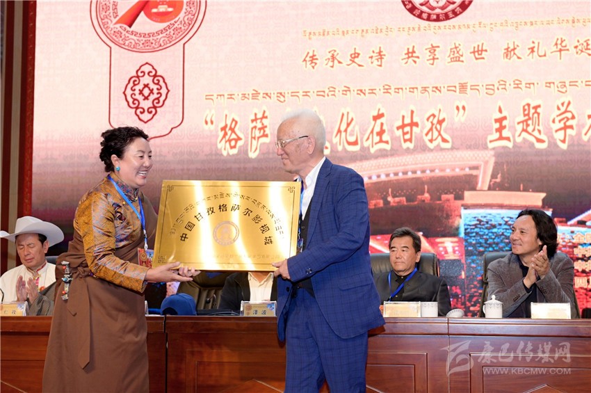 著名格薩爾文化研究專(zhuān)家降邊嘉措為甘孜縣授牌。