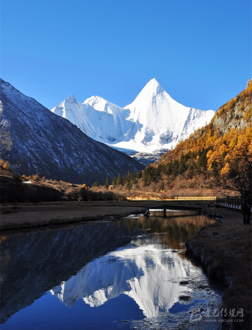 央邁勇,意為“文殊普薩”,海拔5958米,是“三怙主神山”的南峰;狀若一位斜倚在大榻上笑對世界的閑靜處子;在佛教中是智慧的化身。1928年,當美國探險家約瑟夫·洛克先生在云南與稻城毗鄰的崇山峻嶺中遙望央邁勇時,一種被它圣潔、高貴的氣質所折服的情感也隨之降臨了;他在日記中由衷感嘆,“央邁勇是我見到的世界上最美的山峰”。