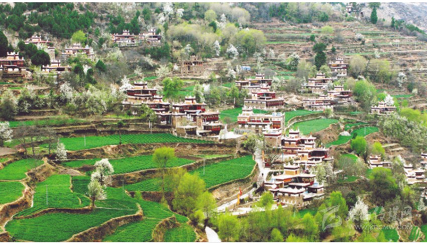 甲居,藏語(yǔ)是“百戶人家”的意思。實(shí)際上甲居藏寨分為一村、二村、三村共150余戶人家,700多人口,甲居藏寨所在地形如一個(gè)面積為5平方公里的大盆,大盆斜倚卡帕瑪群山,一棟棟外形別致、色彩鮮艷的典型嘉絨藏式民居錯(cuò)落有致地從山腳一直排到半山。甲居人一代一代修造的梯田點(diǎn)綴民居之間,顯示出別具一格的田園韻味。茂密的柏樹(shù)掩映著民居,這些別致的民居不象故宮規(guī)模對(duì)稱,也不象蘇州園林隨興布局。碉樓式的民居雖無(wú)嚴(yán)格的統(tǒng)一規(guī)劃,但卻似乎不是隨意而建,每棟民居都有它獨(dú)特?fù)屟鄣娘L(fēng)格。正是這些別具一格的座座碉樓民居,構(gòu)成甲居藏寨的精妙絕倫。民居外所立的經(jīng)幡以及房頂隨風(fēng)飄動(dòng)的瑪尼旗,又為恬靜如詩(shī)的鄉(xiāng)土民居增添了無(wú)限神秘的色彩。祥云籠罩山頂,溪水潺潺環(huán)流,山腳滾滾河流,山水渾映,天水合一,筆者一行不由驚嘆,甲居藏寨 ,名符其實(shí)的人間仙境,世外桃源!先前道路險(xiǎn)峻留在心底的驚懼早已一掃而光,一行人激動(dòng)著迫不及待地?fù)渖碛诿啦粍偈盏南删持小?/p>