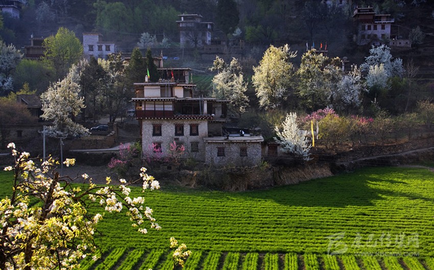 傳統(tǒng)的丹巴民居,一般由鍋莊房、經(jīng)堂、臥室、客廳、儲藏室等組成。此外,樓房部分還含有外廊、陽臺、挑出的旱廁等,共同組成了功能齊全的房屋。在平面布置上,茶房占據(jù)著整個空間的重要位置,并以它為中心布局著其它房屋的布局。