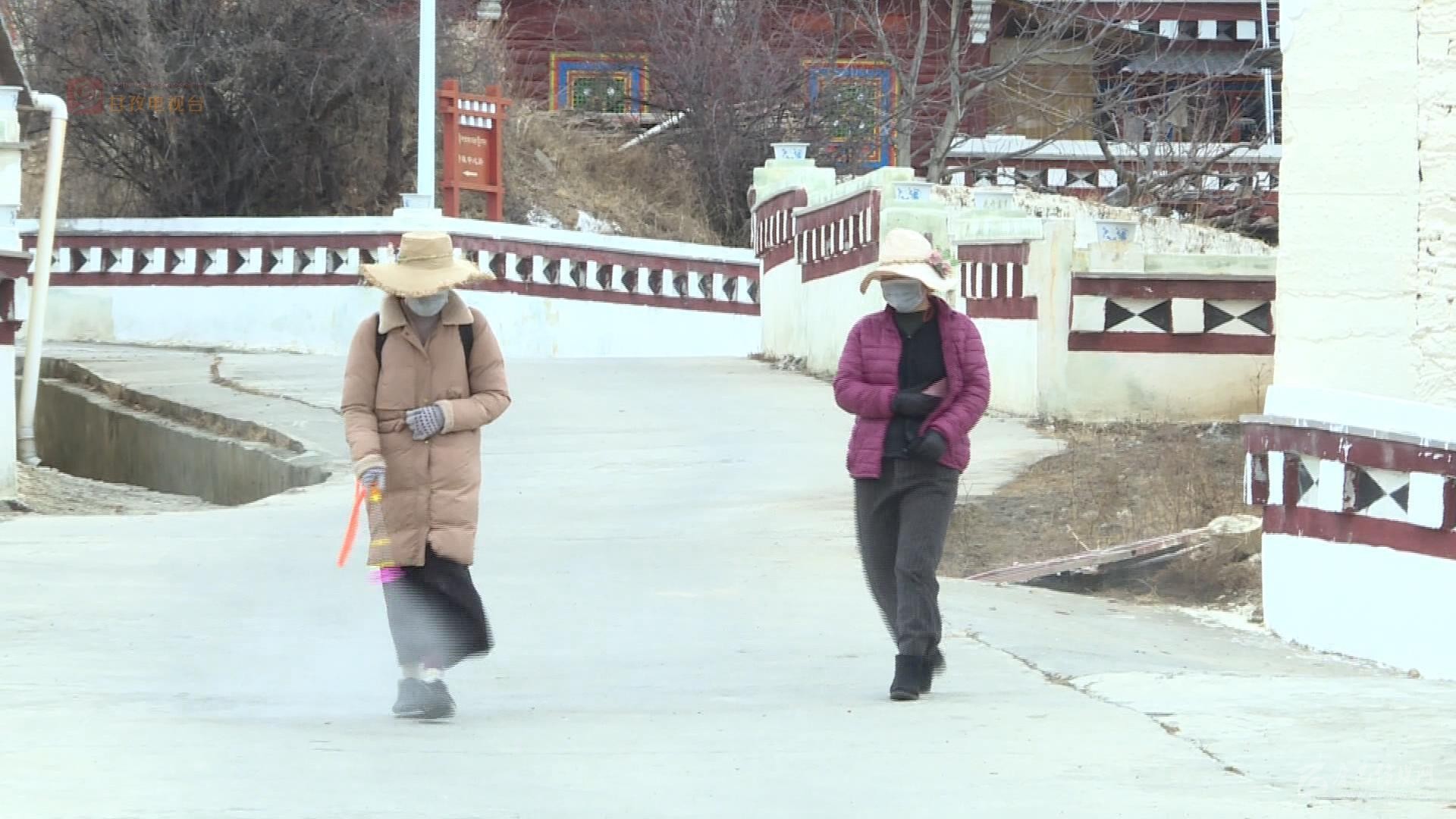 除了7個(gè)州縣級卡點(diǎn)外,在各鄉村同樣是嚴防死守,筑牢了嚴控疫情的第一防線(xiàn)。在距離縣城三公里的格西鄉若珠村村口,我們看到村黨支部書(shū)記澤機和村委會(huì )主任尼瑪降澤頂著(zhù)寒風(fēng)依然駐守在卡點(diǎn)上。尼瑪降澤介紹說(shuō)全村有65戶(hù)283人,他說(shuō)支部書(shū)記負責村口卡點(diǎn)的24小時(shí)值守,其余六名村干部就負責包戶(hù)巡邏檢查,每天村里的消毒,村民的體溫監測統計等等,大家都繃緊著(zhù)嚴防死守這根弦。