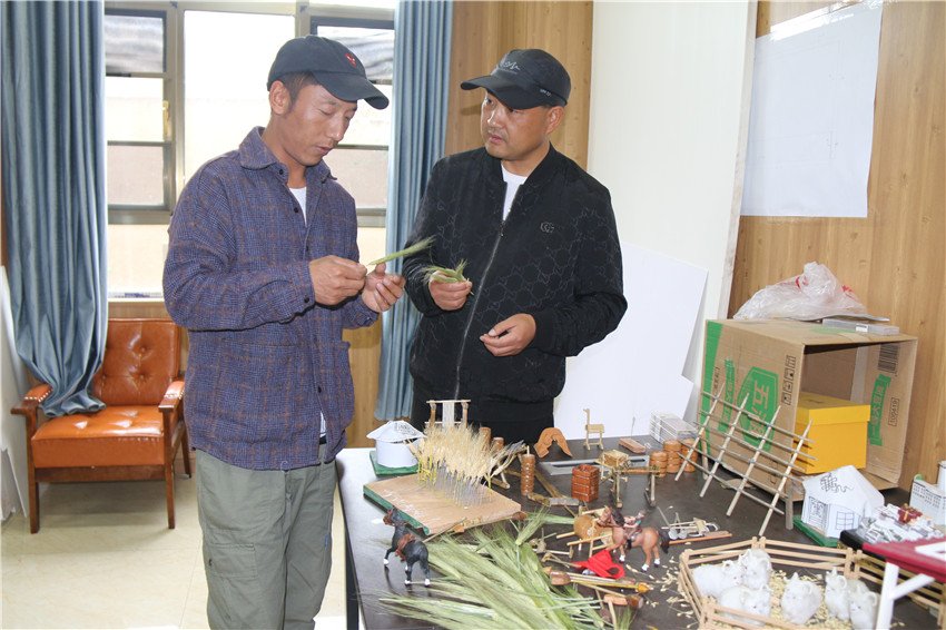 王建利同工作人員商議產(chǎn)品研發(fā)制作情況。