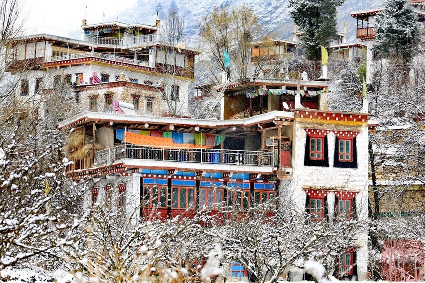 紛紛揚(yáng)揚(yáng)落下的雪,覆蓋在斑斕的彩林上,被太陽一曬,格外好看,來丹巴,享受愜意的暖陽吧!