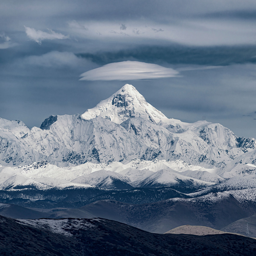 貢嘎山(Minya Konka)位于四川省康定以南,是大雪山的主峰。周?chē)泻0?,000米以上的山峰45座,主峰更聳立于群峰之巔,海拔7,508.9米,是橫斷山系大雪山的最高峰,四川省第一高峰,被譽(yù)為“蜀山之王”。