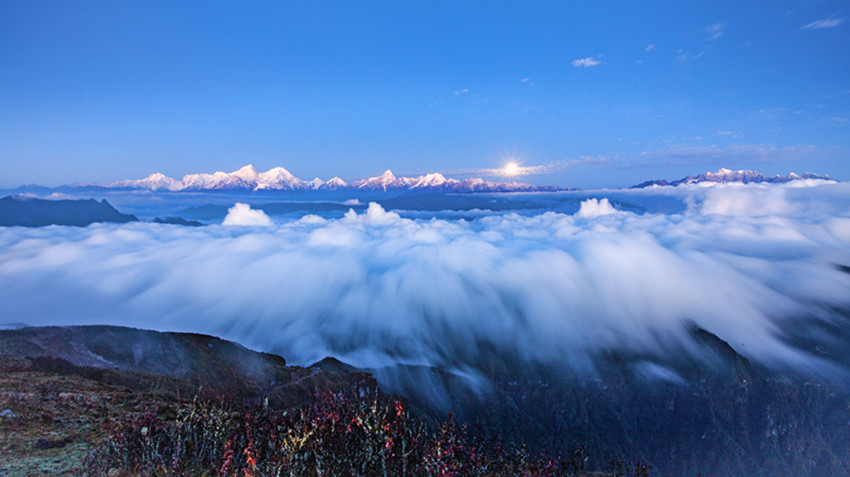 正因?yàn)樨暩卵┥骄哂羞@樣的特點(diǎn),一代接一代的攝影人為了看到與眾不同的貢嘎雄姿,不辭辛勞,不斷尋找新的拍攝角度、不同的拍攝機(jī)位和發(fā)現(xiàn)新的景觀,只為從另一個(gè)視覺(jué)一睹貢嘎雪山的尊容。
