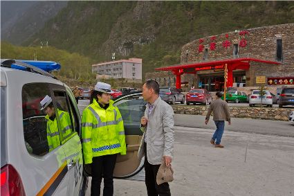 為確保各地游客“五一”小長假期間在康定游得開心、游得放心,維護旅游城市的良好形象,康定市公安局精心部署,周密安排,科學(xué)布警,嚴(yán)密各景點治安防控,為游客提供良好的治安環(huán)境,用橄欖綠、藏藍色描繪出一道靚麗的風(fēng)景線。
