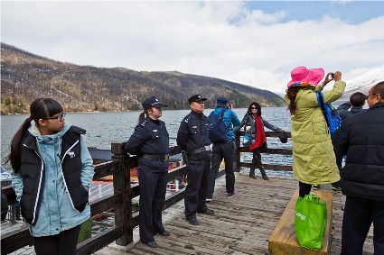 “五一”小長假期間,在康定各景點隨處可見公安民警、武警執(zhí)勤巡邏的身影,他們用熱情、規(guī)范、文明的行動,為游客提供公安便民服務(wù),救助有困難的游客,指揮疏導(dǎo)車輛,保證道路交通安全,打擊欺客、騙客等違法行為,確實保護游客的合法利益。 (康定市公安局 劉鴻 攝影報道)