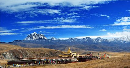 在金秋季節(jié),當(dāng)嬌滴滴的“水月江南”還在苦苦盼望燥熱早日離去時,而明媚的秋色已經(jīng)在粗獷豪邁的甘孜大地上揮毫潑墨。