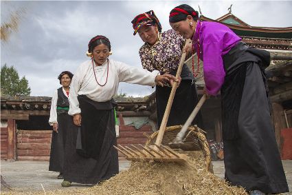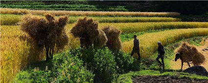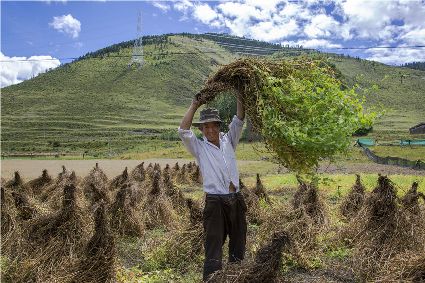 康定市姑咱鎮(zhèn)達(dá)杠村村民李翠軍一邊采摘著蘋(píng)果,一邊喜悅地告訴記者,達(dá)杠所產(chǎn)的蘋(píng)果個(gè)頭大、色澤好、吃味好、耐儲(chǔ)藏,到目前,全村蘋(píng)果種植面積800多畝,去年蘋(píng)果產(chǎn)量160萬(wàn)斤,今年雨水好,蘋(píng)果產(chǎn)量將猛增到200萬(wàn)斤以上。目前,村子里蘋(píng)果種植大戶(hù)家庭年收入過(guò)10萬(wàn)元的就有20多戶(hù)。康定市將達(dá)杠村打造成川藏觀光農(nóng)業(yè)第一村。按照規(guī)劃,村里會(huì)進(jìn)一步擴(kuò)大蘋(píng)果種植面積,以蘋(píng)果利用為核心,發(fā)展“春賞花、夏攝影、秋摘果、冬體驗(yàn)”四季觀光農(nóng)業(yè)產(chǎn)業(yè)。五谷豐登六畜興旺,甘孜高原共慶豐收。農(nóng)民豐收節(jié),它既是億萬(wàn)農(nóng)民慶豐收、曬豐收的節(jié)日,也是全社會(huì)享豐收、助增收的節(jié)日;既寄托著農(nóng)民的追求、農(nóng)民的希冀,也承載著全體中華兒女的深情與追憶;中國(guó)農(nóng)民豐收節(jié),農(nóng)牧民收獲的不只是甜蜜蜜的果實(shí),鼓起的不只是沉甸甸的荷包,更是滿(mǎn)滿(mǎn)的榮譽(yù)感、幸福感、獲得感!