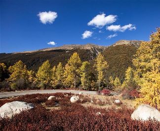 上一圖集:秋色與藍(lán)天相映 明珠與雪山成趣