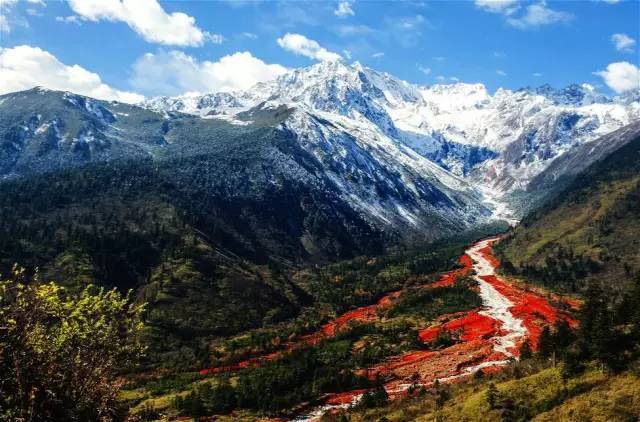 雅家埂位于海螺溝范圍內(nèi),四周環(huán)繞著終年不化的雪山、瀑布、草甸、杜鵑花、冷杉林。冰川河岸上布滿了數(shù)不清的紅石,與清洌的流水相伴順流而下,讓人感嘆大自然的造化神奇。孫儷鄧超主演的仙境電影《畫壁》,就曾在此取景拍攝。