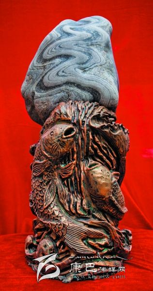 古老的金沙江終年奔騰不息,隔江相望,對面就是西藏。據傳金沙江因產(chǎn)金而名,卻鮮有人知這流經(jīng)高原的江河兩岸隱藏著(zhù)令人稱(chēng)奇的“珍寶”。扎西澤仁收藏的第一塊奇石就是從金沙江東岸的山溪中獲得的。那是在巴塘所屬的竹笆籠一處山溝,綠蔭蔽日的大山深處,猶如從云端婉延而下的溪流九曲十八彎,帶著(zhù)高原山嶺的摯情一路撲向金沙江。那年,他在清幽澈碧的溪水中發(fā)現了這塊花紋如飄動(dòng)的錦緞般的奇石,其形其紋恰如這飛瀑流溪的雕刻拓片。驚喜之際,他把它抱回了家,直至十多年后的今天,這塊被他命名為“高山流水”的奇石仍顯目地擺放在他家獨特的奇石博物架上,成為他起步收藏康藏奇石的見(jiàn)證。