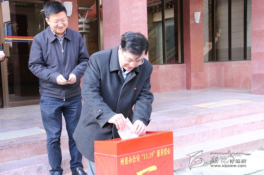 募捐儀式上,胡昌升對州委辦公室干部職工積極踴躍參與愛心慈善活動(dòng)給予了充分肯定,并希望全州廣大干部職工和社會(huì)各界愛心人士要大力弘揚(yáng)“甘以愛人、孜求慈善”的甘孜愛心慈善精神,積極參加到“11·19愛心慈善一日捐”活動(dòng)中來,為全州困難群眾伸出援手、獻(xiàn)上愛心、作出貢獻(xiàn)。