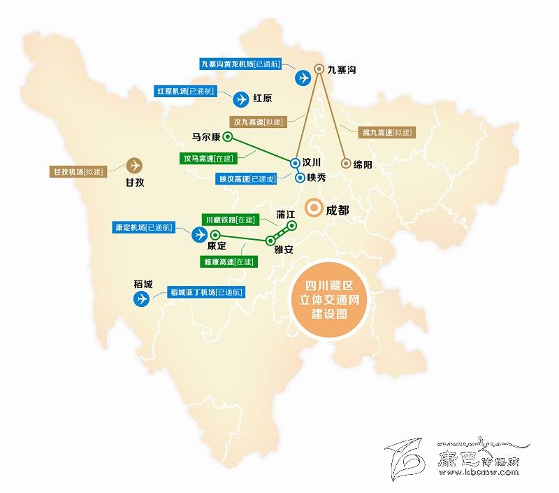 上月出臺的《四川省推進實施長江經(jīng)濟帶綜合立體交通走廊規(guī)劃工作方案》中提出,我省將加快支線機場建設,包括進一步完善位于四川藏區(qū)的紅原機場配套設施,以及將在“十三五”期間,開工建設同樣位于藏區(qū)的甘孜機場。鐵路方面也有好消息,備受關注的川藏鐵路,除了剛剛全線開工的蒲江至雅安段外,還將在明年上馬建設雅安至康定(新都橋)段。