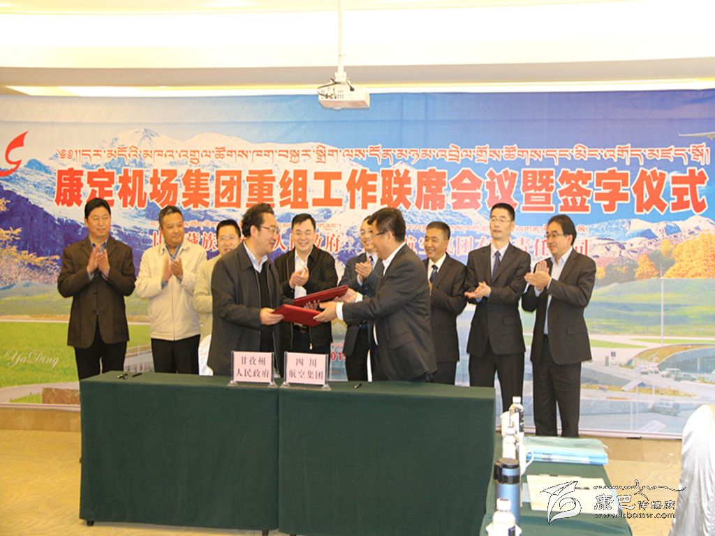 會上,胡昌升和李海鷹分別作了講話,益西達(dá)瓦和李海鷹分別代表州人民政府和川航集團(tuán)簽署了四川康定機(jī)場集團(tuán)公司重組事宜備忘錄。李海鷹在講話中表示,川航集團(tuán)和甘孜州的發(fā)展方向一致,價值取向一致,雙方一定會在加強(qiáng)合作的基礎(chǔ)上實現(xiàn)共同發(fā)展;川航將盡快開通西安、重慶、昆明、杭州至甘孜州的航線,開通康定至稻城的“高高原”互飛航班;充分利用川航集團(tuán)的宣傳平臺,推廣甘孜州旅游、文化等優(yōu)勢資源和產(chǎn)業(yè),積極參與甘孜州全域旅游發(fā)展,將甘孜州“飛機(jī)+X”相關(guān)產(chǎn)業(yè)納入川航集團(tuán)“十三五”規(guī)劃。