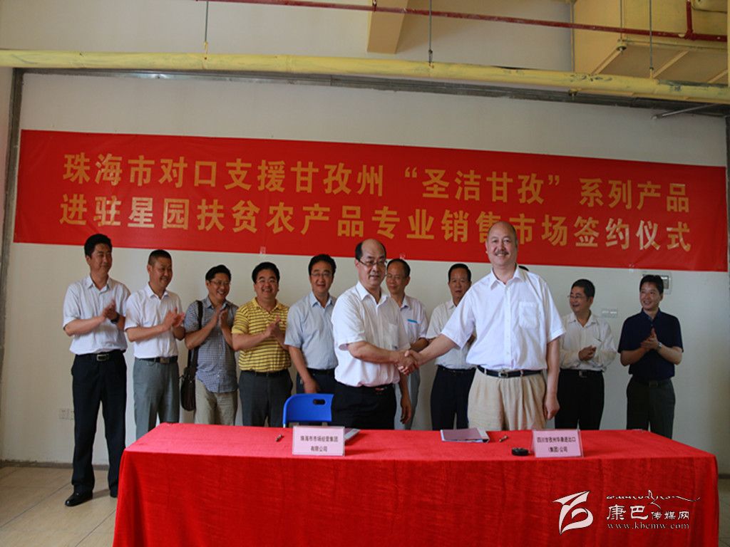 珠海市為了更好幫助甘孜州推銷(xiāo)特色農(nóng)副產(chǎn)品,還專(zhuān)門(mén)在位于繁華市區(qū)的星園市場(chǎng)開(kāi)辟了珠海市對(duì)口幫扶地區(qū)特優(yōu)農(nóng)副產(chǎn)品專(zhuān)業(yè)銷(xiāo)售市場(chǎng),并設(shè)立了近400平方米的“圣潔甘孜”特色產(chǎn)品專(zhuān)銷(xiāo)區(qū)。在參觀了甘孜州產(chǎn)品專(zhuān)區(qū)后,我州考察團(tuán)領(lǐng)導(dǎo)與珠海市相關(guān)領(lǐng)導(dǎo)共同見(jiàn)證了珠海市對(duì)口支援甘孜州“圣潔甘孜”系列產(chǎn)品進(jìn)駐星園扶貧農(nóng)產(chǎn)品專(zhuān)業(yè)銷(xiāo)售市場(chǎng)簽約儀式,我州知名民營(yíng)企業(yè)華康進(jìn)出口(集團(tuán))公司正式成為進(jìn)駐星園扶貧農(nóng)產(chǎn)品專(zhuān)業(yè)銷(xiāo)售市場(chǎng)的第一家州內(nèi)企業(yè)。