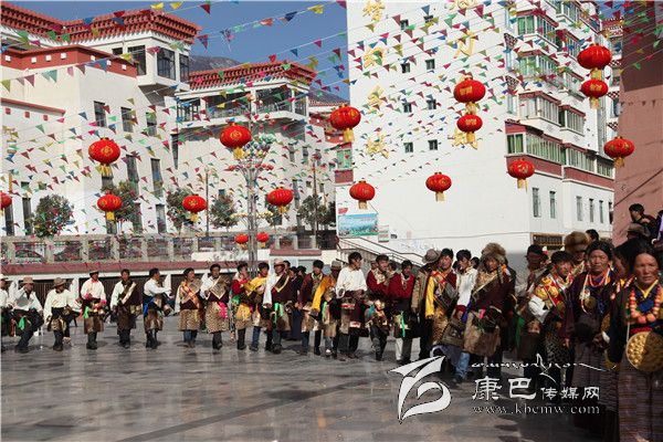 大年初三早上十點(diǎn),鄉(xiāng)城縣城的社區(qū)群眾穿戴盛裝在香巴拉休閑廣場圍成大圓圈,跳起了歡快的鍋莊。隨著歌師的唱詞,男女舞者手牽著手踏著節(jié)拍邊唱邊跳,讓節(jié)日的鄉(xiāng)城縣城充滿了喜慶的氣氛。