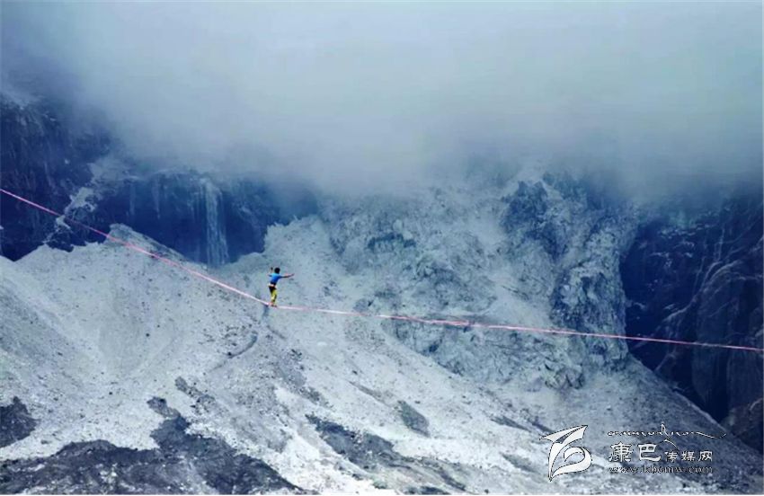 本次高空挑戰(zhàn)線路長約820米,扁帶架設于海拔高度約3600米的海螺溝冰川之上,所有參賽選手所依仗的“工具”是一根寬度僅有2.5厘米的扁帶,相比于走鋼絲,扁帶充滿彈性,容易左右搖擺、上下顛簸,而且走扁帶沒有平衡桿輔助,難度可想而知。同時海拔高度對高空扁帶運動影響極大,所以該類項目一般都在海拔2000米以下的地區(qū)舉行,此次在海拔3600米的冰川上舉行,讓本次扁帶極限挑戰(zhàn)賽成為全球挑戰(zhàn)難度最大、賽事規(guī)格最高的一次比賽。