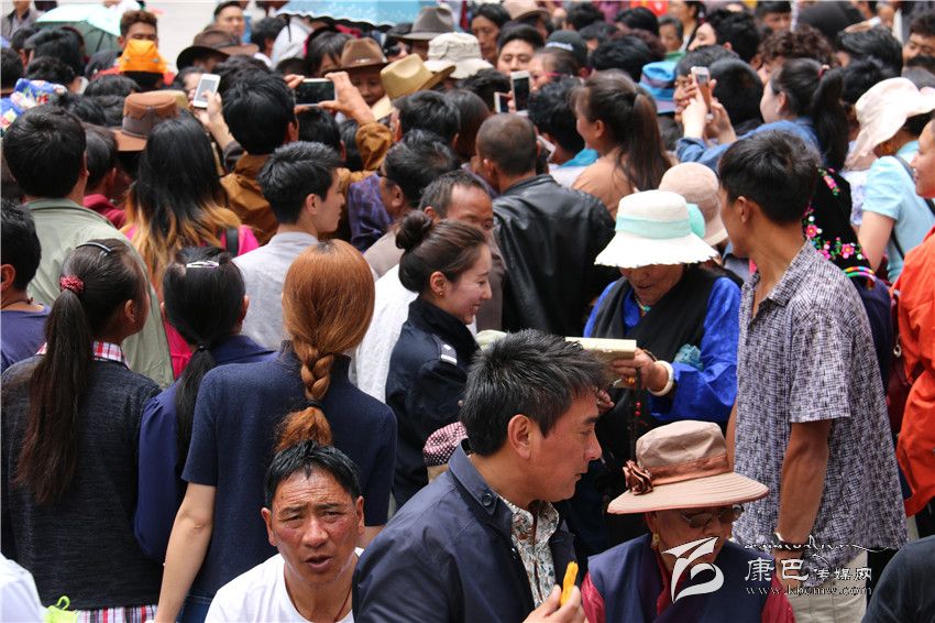 儀式上,當(dāng)擁金措、貢桑吉和布姆分別演唱了《世紀(jì)情白玉夢》、《欽諾》和《康巴之戀》時,場下掌聲不斷。接著,當(dāng)州民族歌舞團的小伙們跳起歡快的《踢踏》時,在場的觀眾立刻與之互動,并不時爆發(fā)出熱烈掌聲。