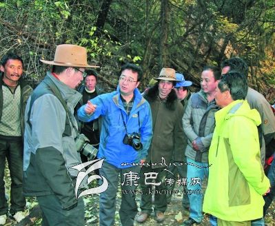 10日早上8點30分,益西達瓦又率隊騎馬從卡斯村進入卡斯谷。一進谷口,大家就被谷口小巧別致的巖溶鈣化彩池、千年古樹沖天柏所震撼。據(jù)說谷口沿線還有古冰川的遺跡,是雪峰、冰川、海子、瀑布、溫泉的共融體,國家二類保護植物干香柏,藥用植物蟲草、貝母、黃芪、大黃等也非常豐富。面對谷內(nèi)五彩繽紛的山色、野性激蕩的溪流、挺拔粗壯的古樹、枝椏橫溢的叢林、結(jié)實樸拙的木橋、壁立千仞的懸崖,考察隊員不禁驚呼:“這不就是阿凡達的故鄉(xiāng)嗎?”益西達瓦時而騎馬,時而步行,一邊察看景致,一邊興高采烈的與同行考察隊員和縣鄉(xiāng)村干部交談。景區(qū)怎樣規(guī)劃?怎樣建設?怎樣宣傳?景區(qū)取什么名字?為景區(qū)賦予什么樣的文化靈魂?哪里修棧道?哪里架索道?哪里修觀光電梯?都一一指導,清晰地勾畫了卡斯谷開發(fā)藍圖。