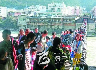 據(jù)縣文物局局長郭成燕介紹,今年“十一”黃金周期間,游覽瀘定橋的游客較往年更理性,沒有出現(xiàn)井噴現(xiàn)象,每天游客量比較平穩(wěn)。游客主要以成都和重慶方向為主,85%以上的游客選擇自駕游出行。據(jù)悉,在10月2日這天,瀘定橋全天接待游客近萬人。為了確保游客安全,縣旅游部門在橋頭設(shè)立了安全警示牌,在游客高峰期,工作人員每5至10分鐘分批次放行,每次參觀放行不超過100人,并安排工作人員在瀘定橋中央疏導游客,確保游人安全。同時,在瀘定橋頭滾動播出參觀須知和瀘定橋介紹,引導游人參觀。黃金周期間,該縣旅游部門堅持24小時值班,隨時對瀘定橋及周邊進行安全巡查,確保安全。截至10月4日,參觀瀘定橋的游客約3.3萬人,門票收入達25萬多元。