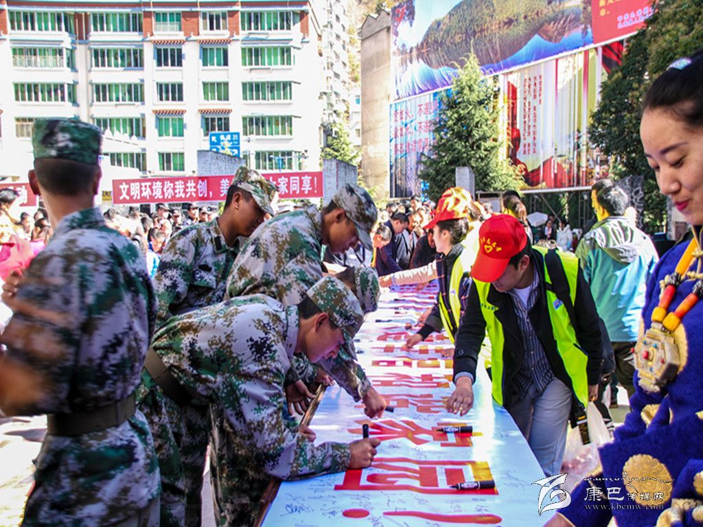 社區居民代表、工商經(jīng)營(yíng)戶(hù)代表、學(xué)生代表倡議大家行動(dòng)起來(lái),積極投身創(chuàng )建省級文明城市活動(dòng),為九龍縣創(chuàng )建省級文明城市貢獻自己的力量。圖為千人簽名活動(dòng)現場(chǎng)。