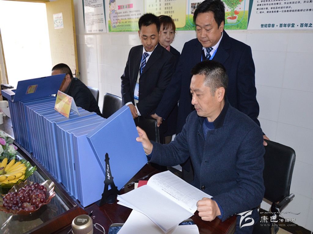 圖為檢查組一行在城區第一小學(xué)查閱資料。