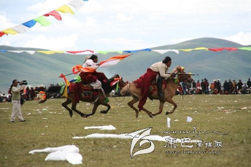 賽馬是廣大藏族群眾十分喜愛的一項體育運動。隨著時代的發(fā)展,賽馬節(jié)的內涵不斷拓展,已形成一種內容豐富多彩的傳統(tǒng)文化。它不僅是農牧民群眾縱情歌舞的聚會,交流農畜產品的市場,而且是藏族群眾展示精神風貌的舞臺。在所有民間傳承的藏族節(jié)日中,幾乎都少不了賽馬活動,并且此項活動有著悠久的歷史。圖為石渠牧民正在開展賽馬活動。 (李宏 攝影報道)