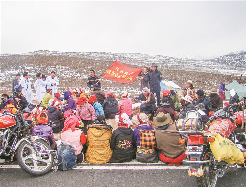 海拔四千米的蟲(chóng)草山上,也有流動(dòng)黨員服務(wù)隊的身影。