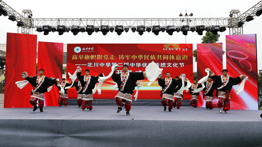 甘孜州籍學(xué)生在北川中學(xué)中華優(yōu)秀傳統文化節上表演節目。