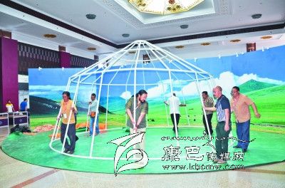 拾階而上,從序廳開始每走一步都會心生蓮花,首先映入眼簾的是兩堵巨大的LED顯示屏,屏幕上滾動播放著旅游宣傳片,清澈的藍天、綠綠的草地、農(nóng)牧民們淳樸的笑意,眼睛開始跟著心靈旅行,而心的深處卻像長出了一對靈巧的翅膀,振振欲飛。西廳的照片墻,除去未經(jīng)PS過的高原美景外,還展示了建州64年來,甘孜兒女向上奮發(fā)的新面貌。由西廳出來至正廳,在跨進門口的一剎那,便會被那頂蒙古包似的虎皮帳篷所吸住魂魄,流連、駐足、照相,它被人們傲慢地搭建在整個展廳最顯眼的位置,仿佛在箱底收藏了那么多年終于揚眉吐氣。北京人是有眼福的,很多在甘孜州本土生活了幾十年的人都是第一次親眼見到這頂帳篷,所有的人都為之驚嘆,并好奇這頂帳篷背后的故事。而關(guān)于這頂虎皮帳篷的記載并不多,這頂帳篷原是屬于理塘縣“雍若本”人的,而“雍若本”人舊時為理塘毛埡的土司階層,由于他們的祖先是從青海游牧過來的部落,到現(xiàn)在都保留有流動帳篷寺廟的風俗,據(jù)專家們推測如此奢華威嚴的一頂帳篷可能是流動的官府衙門。