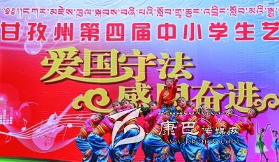 為全面貫徹教育方針,推進(jìn)素質(zhì)教育,促進(jìn)學(xué)生德智體美全面發(fā)展,發(fā)揮校園文化育人功能,增強(qiáng)學(xué)生參與文藝活動(dòng)的熱情。由州教育局與康定、巴塘、瀘定、甘孜縣政府和康定中學(xué)聯(lián)合主辦,主題為“愛(ài)國(guó)守法,感恩奮進(jìn)”的全州第四屆中小學(xué)生藝術(shù)節(jié)分為片區(qū)展評(píng)和決賽兩個(gè)階段進(jìn)行。經(jīng)過(guò)四個(gè)分賽區(qū)的展評(píng),從1800多幅作品和184個(gè)節(jié)目中評(píng)選出了49個(gè)優(yōu)秀節(jié)目和340幅優(yōu)秀作品參加康定決賽階段的比賽。