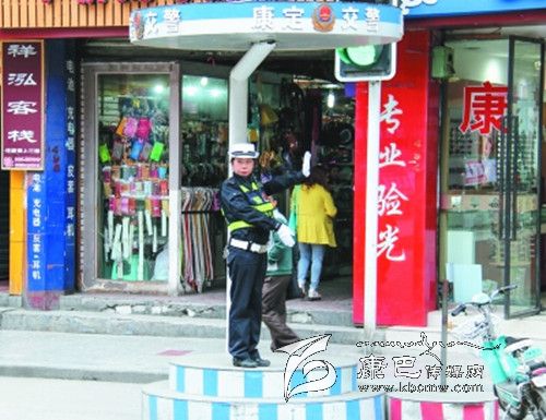 “川G*****,趕快開走,不要在公交站牌前停靠”,“那位騎摩托車的,速度慢一點,慢一點。”八點鐘,曹韓康的大喇叭聲準(zhǔn)時在群藝館十字路口響起。